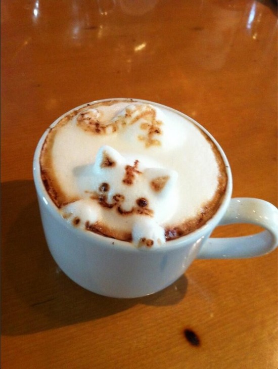 L’ultima evoluzione, molto curiosa, è quella del 3D, trasformando la schiuma del cappuccino non in “semplici” dipinti, ma addirittura in sculture. Chi ha sviluppato maggiormente questa tecnica è Kohei Matsuno, ex barista di Osaka, che ha notato che ormai la gente non notava più le decorazioni tradizionali, e gli è venuta l’idea di scolpire la schiuma.